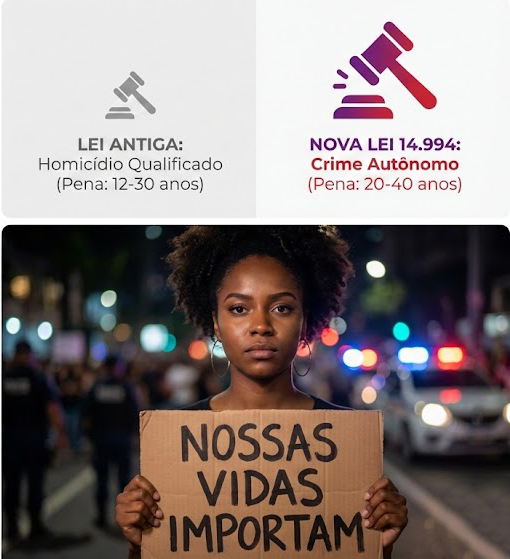 Além dos protestos, a batalha ocorre também no campo legislativo. Recentemente, o Brasil sancionou a Lei 14.994/2024, um marco na história jurídica do país. Essa legislação endurece significativamente as penas e traz mudanças que o movimento feminista exigia há anos.